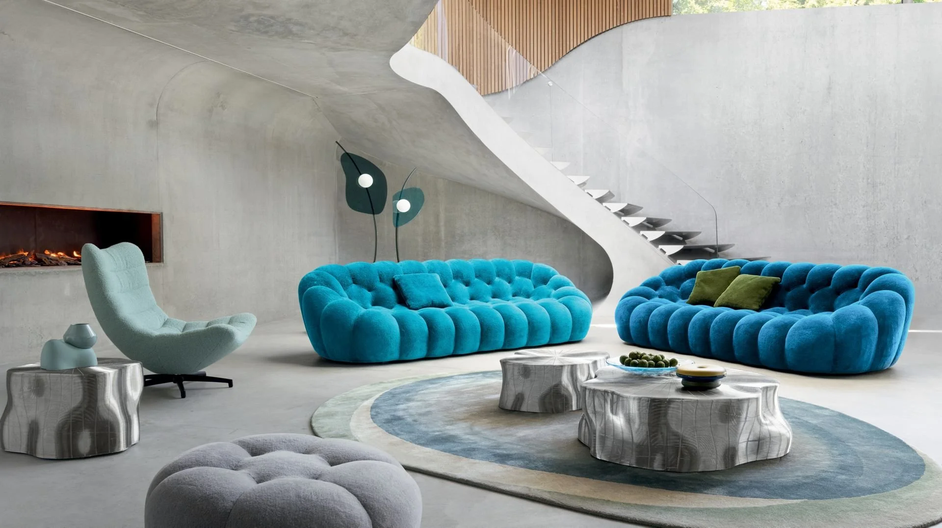 Carlotta Fortuna's "Stone" rug breaks traditional boundaries with its organic, pebble-inspired design. Eschewing rectangular norms, the rug's outline mimics a winding river, its edges following the natural curves of imaginary stones. The mineral and earthy color palette evokes nature's soothing tones, creating a calming ambiance. This unconventional rug transcends mere floor covering, becoming a versatile statement piece that brings the tranquility of a riverside retreat into any interior, from minimalist to eclectic spaces.